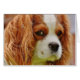 Photograph of a King Charles Spaniel looking quite serious and maybe a little annoyed.