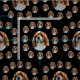 Pictured is a king Charles spaniel in a circular pattern