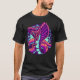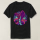 I give wanted to give this a 4 instead of a 5 because these Basic DARK T0shirts run unexpectedly SLIM or Narrow. Which is great if you do not have a potbelly, but I have a paunch. It isn't the shirt's fault that I've got a beer belly. The design and shirt itself is a quality cotton shirt. The color is more of a deep purple, but still a very pretty color. The Basic DARK T-shirts run a bit SLIMMER than the Basic Ts. The neck is a fraction narrower (or seems to be narrower) also. I'm a paunchy middle-aged woman and my neck is 12 inches (31cm) thick and the neckline fell about the same as in the photo of the man, and I had the desire to tug it a bit. So if you're a thick necked man or like loose shirts, be aware these are slimmer shirts. Once I get rid of my lockdown paunch it'll look great. The shirt washed well in cold water with no apparent bleeding. We don't have a dryer, so it hung dry. Did not shrink. Love the colors and the design. The design looks smaller on my shirt than it does on the model on-line. But still, it looks good on the shirt. The printing looks as it does on the model, just the size seems fractionally smaller. Washed garment in cold water, hung dry and design appeared unaffected.