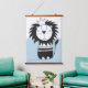 Modern baby/kids wood topped tapestry features a cute lion with crown on blue and white colorblock background.