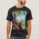 I give wanted to give this a 4 instead of a 5 because these Basic DARK T0shirts run unexpectedly SLIM or Narrow. Which is great if you do not have a potbelly, but I have a paunch. It isn't the shirt's fault that I've got a beer belly. The design and shirt itself is a quality cotton shirt. The color is more of a deep purple, but still a very pretty color. The Basic DARK T-shirts run a bit SLIMMER than the Basic Ts. The neck is a fraction narrower (or seems to be narrower) also. I'm a paunchy middle-aged woman and my neck is 12 inches (31cm) thick and the neckline fell about the same as in the photo of the man, and I had the desire to tug it a bit. So if you're a thick necked man or like loose shirts, be aware these are slimmer shirts. Once I get rid of my lockdown paunch it'll look great. The shirt washed well in cold water with no apparent bleeding. We don't have a dryer, so it hung dry. Did not shrink. Love the colors and the design. The design looks smaller on my shirt than it does on the model on-line. But still, it looks good on the shirt. The printing looks as it does on the model, just the size seems fractionally smaller. Washed garment in cold water, hung dry and design appeared unaffected.