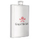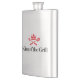 The product is a good size and came exactly as it was pictured.  The lid is not attached to the flask, which could be dangerous on drunken nights... The print came out surprisingly well and looks very sharp.  Would definitely recommend.