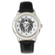 King of the Jungle Lion Face in Black. A stately lion's face drawing in black.  He is not roaring, he is looking straight ahead with steady eyes. His main falls around his head in bold curved stripes. The design is placed just a bit above the centre so you can better see his eyes and face. A safari or zoo wild amimal theme.  OPTIONS - Keep as is, or delete clock numbers if you prefer to have it plain with just the lion's head. Use Customise, Edit and Background if you prefer to add a background colour other than white. Click done at the bottom of colour choices to confirm your pick. For other clock styles: If you delete the clock numbers, you can enlarge the design by using plus sign and then centre the picture.
