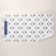 Towel set with three towels: a washcloth with navy blue stripes and an illustration of a polar bear with a paw print; a striped hand towel with the same look; and a bath towel featuring a pattern of polar bears in black, white, and grey. Personalise with your child's name on each towel.