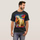 I give wanted to give this a 4 instead of a 5 because these Basic DARK T0shirts run unexpectedly SLIM or Narrow. Which is great if you do not have a potbelly, but I have a paunch. It isn't the shirt's fault that I've got a beer belly. The design and shirt itself is a quality cotton shirt. The color is more of a deep purple, but still a very pretty color. The Basic DARK T-shirts run a bit SLIMMER than the Basic Ts. The neck is a fraction narrower (or seems to be narrower) also. I'm a paunchy middle-aged woman and my neck is 12 inches (31cm) thick and the neckline fell about the same as in the photo of the man, and I had the desire to tug it a bit. So if you're a thick necked man or like loose shirts, be aware these are slimmer shirts. Once I get rid of my lockdown paunch it'll look great. The shirt washed well in cold water with no apparent bleeding. We don't have a dryer, so it hung dry. Did not shrink. Love the colors and the design. The design looks smaller on my shirt than it does on the model on-line. But still, it looks good on the shirt. The printing looks as it does on the model, just the size seems fractionally smaller. Washed garment in cold water, hung dry and design appeared unaffected.