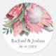 Beautifully elegant and a popular choice in wedding flowers, this custom envelope seal design features the exotic King Protea flower. Colours include light and dark pink, burgundy, teal and green. Edit the sample text with the bride and groom's name and wedding date, or other text of your choosing. These small stickers make a lovely custom addition to your wedding invitations used as an envelope seal. You can also choose the larger size for other purposes such as to place on wedding or shower favours, gifts and more.