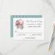 A lovely RSVP card that is part of the "King Protea Watercolor Botanical Wedding Collecton". It features the exotic protea flower in watercolor hues of light and dark pink, burgundy, teal and green. Edit the sample response date with your required date. The reverse side of this card is shown in teal. You can edit this colour to any other colour (including white) by choosing "customise it" and selecting the background colour of your choice.