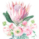 King Protea Wedding Napkin from the Protea Wedding Theme Set, Very elegant and features a Watercolor bouquet of florals and proteas. Add your own name and details, personalized, customize