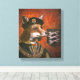 This canvas depicts king Richard the III as a fox set before a reddish background with a shield bearing three white foxes. It is painted in an aged style to give the feel of a medieval portrait.