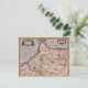 Postcard reproduced from a beautiful small hand coloured map of Morocco and North Africa, showing the strait of Gibraltar and centred on the principal city of Fez. Based on the copperplate engraving from Atlas Minor published by Jan Jansson in Amsterdam during the first part of the 17th Century. Jansson's Atlas Minor was a reduced version of the Mercator. The Copperlate engravings for Altas Minor were done by Pieter van den Keere (Petrus Kaerius - 1571-1646) or Abraham Goos. Original Latin text on reverse. Old hand colouring. Some place names on this map (many with old spellings): Ceruta, Tanger (Tangiers), Teniesna, Zenetae, Xauyi, Zuga, Tamechia, Podeazag etc...