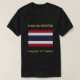 This Tshirt: Says Kingdom of Thailand above (in Thai) the flag and below (in English) with yellow letters.