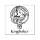Kingfisher crest badge surrounded by a strap and buckle. Custom text.