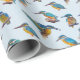 Kingfishers painted on a pale blue background wrapping paper