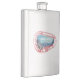 The product is a good size and came exactly as it was pictured. The lid is not attached to the flask, which could be dangerous on drunken nights... The print came out surprisingly well and looks very sharp. Would definitely recommend.