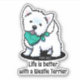 Adorable KiniArt original illustration by Contemporary PUP Artist, Kim Niles, of a sweet Westie Terrier dog wearing a green scarf ... A sweet gift for a Westie mum or dad, breeders, enthusiasts of the breed, & dog lovers in general. ©️Kim Niles, KiniArt™️ - All Rights Reserved.