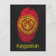 Postkarte mit einem Fingerabdruck in den Farben der Flagge von Kirgisistan.