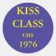 Kiss Class, blue and gold sticker. Classic Round Sticker