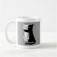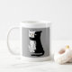 A funny cat mug for cat lovers, the mug shows an illustration of a cute black cat kissing a just as cute white cat. The design is based on a vintage French postcard.