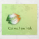 St. Patrick's Day illustration: lips in the national flag colour of Ireland - green, white, orange - on a light background with shamrocks and the text "Kiss me, I am Irish".