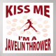 Kiss Me I'm A Javelin Thrower. Get this fun design featuring your hobby, occupation, or obsession on great t-shirts, stickers & much more. They also make great gifts!