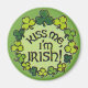 Shamrocks of different sizes and colours form a circle around the words “Kiss Me I’m Irish”.