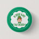 The funny design on this St. Patrick's Day button features a red-headed Irish man wearing a green bow tie and green hat puckering his lips, and the caption "Kiss Me I'm Irish" in large green text.