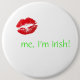 Button with reds lips on a white background showing a kiss and in green the text 'Kiss me I'm Irish!'. Great to wear on St. Patrick's Day.