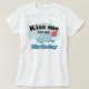 Leuk shirt met de tekst: kus me het is mijn 40e verjaardag. een kus is afgebeeld met rode lippenstift. Verder zijn de kleuren zwart en blauw. Leuk cadeau om aan iemand te geven die veertig 40 is geworden, of voor jezelf om te laten zien dat je jarig bent.