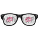 Fun novelty shades. Perfect for a bachelorette party! KISS ME written in thin black letters over a smudgy lipstick mark in pink.