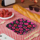 Pink and red lipstick kisses with small black hearts and XOXO Valentine's Day pattern