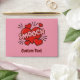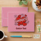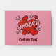 Word SMOOCH over red hearts. Kissing comic sound effect. Custom background colour. Custom text.