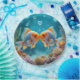 In a mesmerising underwater world, two goldfish share a tender kiss, surrounded by whimsical heart-shaped bubbles drifting gracefully to the surface.