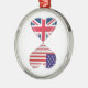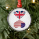 Kissing USA and UK Hearts Flags Art Metal Tree Decoration