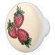One way to do a frugal cabinet makeover for an interior design change is to replace cabinet or dresser drawer knobs. This design features a three strawberry cluster design over a subtle beige background.