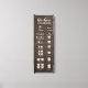 Kitchen conversions chart. Commonly used measurements. Brown and ivory. Teaspoons, tablespoons, ounces, cups, pints, gallons.