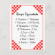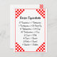 This simple retro design of a red and white restaurant check pattern gives recipe measuring equivalents for help baking and cooking in the kitchen. The back has lines for writing down your favourite recipes. Delete the lines for a blank card. Click Customised It to add your name or text