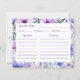 Kitchen Gift Elegant Purple Floral Recipe Card