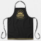 This design is for a kitchen queen featuring a gold crown illustration with a custom name. Changeable apron colour.