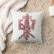 Add some humour to your kitchen or dining space with this graphic pillow featuring antique illustrations of silverware backed by the words 'Just eat it' in bold red typography. Modern and fresh with a touch of vintage whimsy, this pillow would make a great funny gift for the foodie in your life. The back side is printed with a coordinating red and white kitchen striped pattern. Retro design with a farmhouse flair!