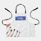 Kitchen Stuff Blue Apron with hand drawn Kitchen Utensils.