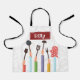 Kitchen Stuff Red Apron with hand drawn Kitchen Utensils.