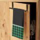 This kitchen towel is shown in a cute black and green buffalo plaid print design.