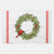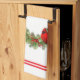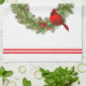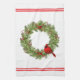 Holiday kitchen towel shown in white with a festive Christmas wreath and red cardinal bird design.