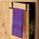 A richly coloured Kitchen Towel or Tea Towel, with a mix'n'match design of traditional ogee shape patterns in shades of Purple and bold checks in Plum and Dazzling Blue.