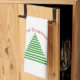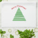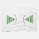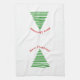 Trees of multiple geen linesat either end of towel. Above each tree is red text that curves above the trees reads "Merry Christmas!"