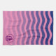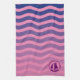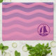 Add your monogram to this nautical kitchen towel featuring a purple sailboat on waves of blue and pink. Perfect for seaside picnics and fish dinners.