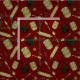 Our original kitchen utensils and accessories pattern in sepia on a dark red background. Original design by Holiday Hearts Designs (all rights reserved).