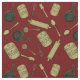 Kitchen Utensils Pattern - Sepia on Dark Red Fabric