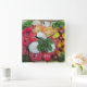This kitchen wall clock features an arrangement of tomatoes, cucumbers and parsley.