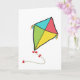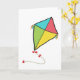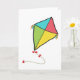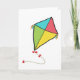 Kite design shows a hand drawn kite flying in the air with geometric colors, kite tail and ribbons. For kite flying fans.